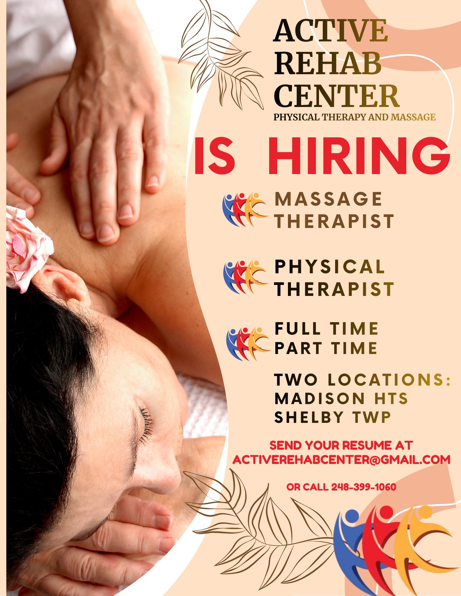 Active Rehab Center is excited to announce that we are growing and currently hiring dedicated Massage Therapists and Physical Therapists to join our welcoming and supportive team. With locations in Madison Heights and Shelby Township, we offer both full-time and part-time opportunities for professionals who are passionate about helping patients feel better and move better every day.
